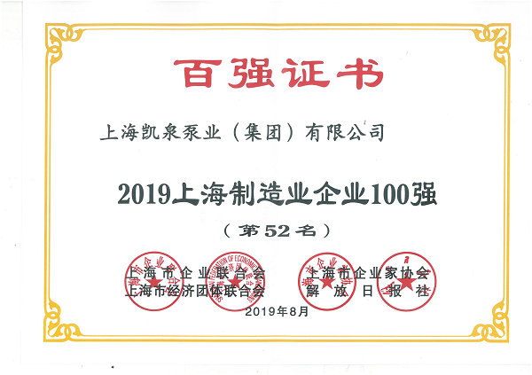 上海凱泉泵業(yè)集團(tuán)進(jìn)入中國(guó)機(jī)械工業(yè)百?gòu)?qiáng)企業(yè)